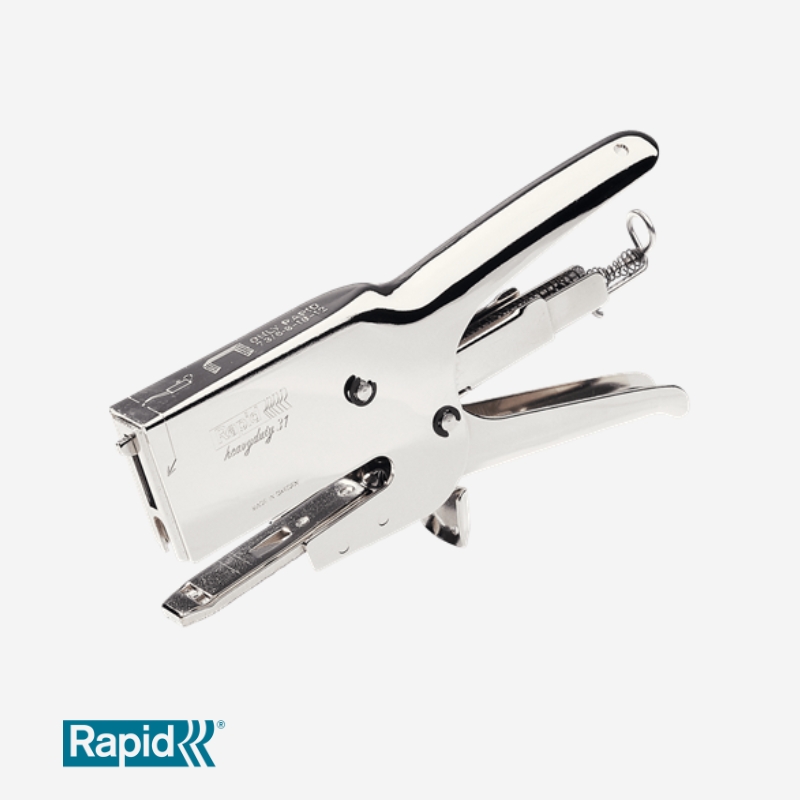 Grapadora tenaza HD Rapid, es una grapadora de tenaza niquelada con tope de parada.